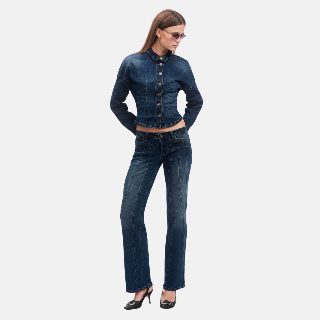 DEVIN Denim Jeans are designed with a clean, elongating silhouette that sits close through the hips and falls into a straight leg. Vertical seam detailing adds structure and definition, creating a refined, sculpted look that feels modern and intentional. The denim holds its shape, delivering a balanced and confident expression made for everyday wear.