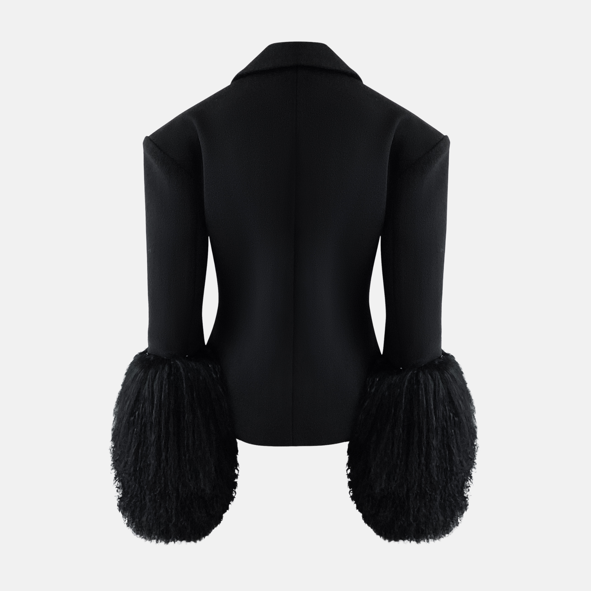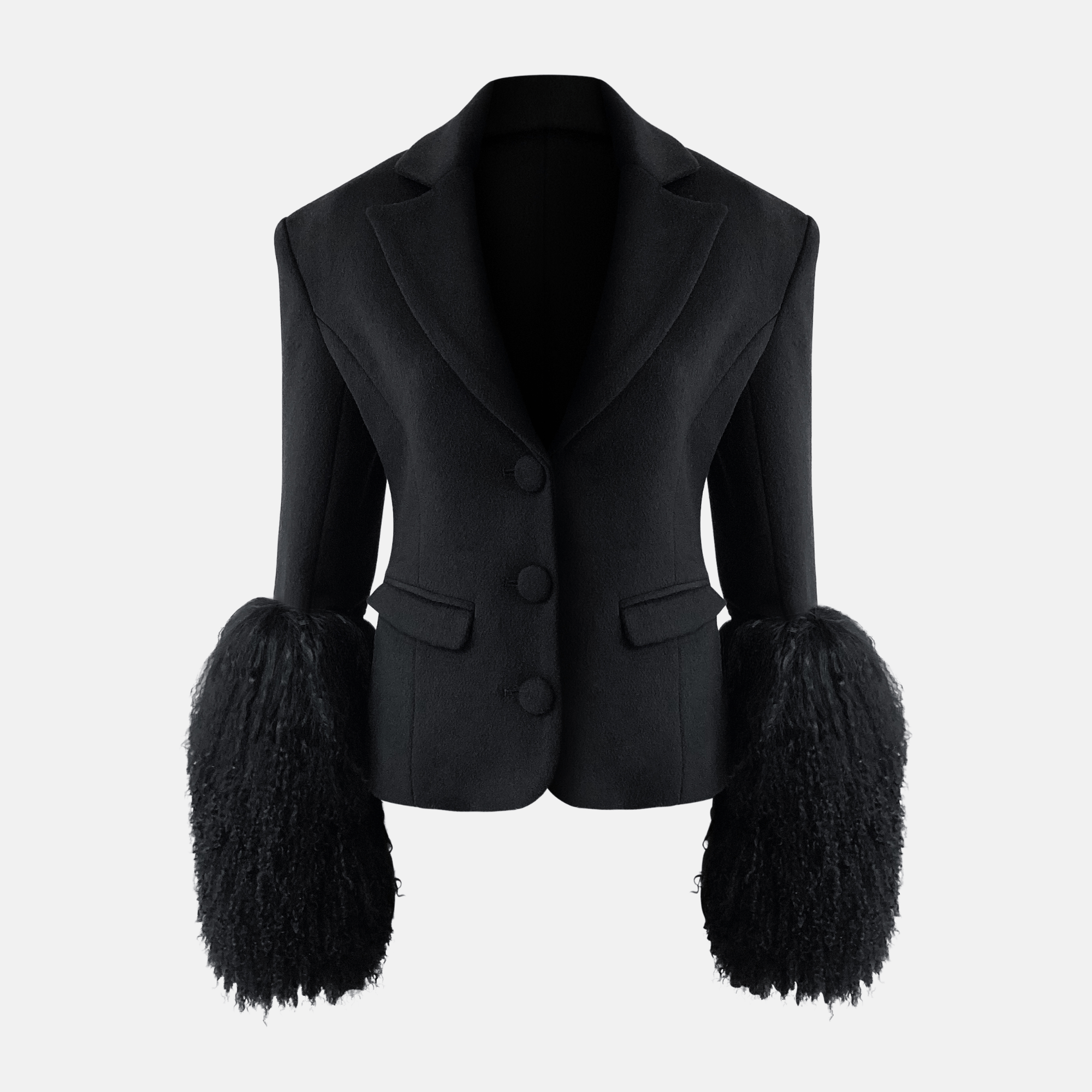 The FRANCES Wool Blazer elevates classic tailoring with a bold twist. Crafted in structured wool for a sharp, refined silhouette, it features detachable real fur sleeves that transform the piece from timeless precision to high-impact statement. Finished with tailored lapels, flap pockets, and a clean button closure, FRANCES Wool Blazer is designed for modern dressing with versatility and edge.