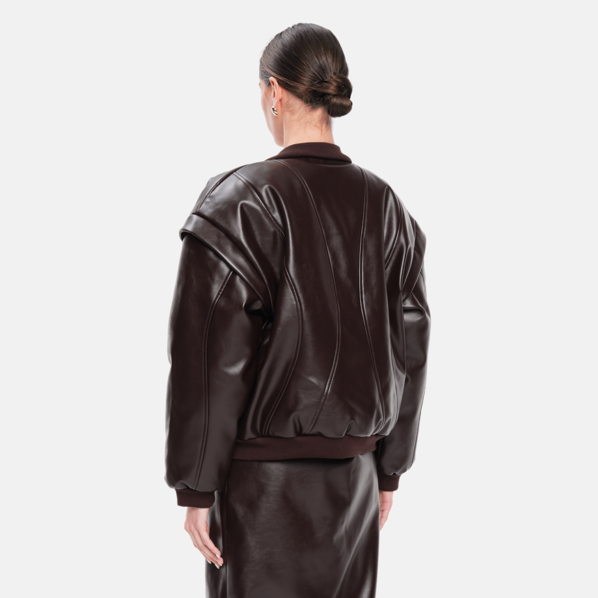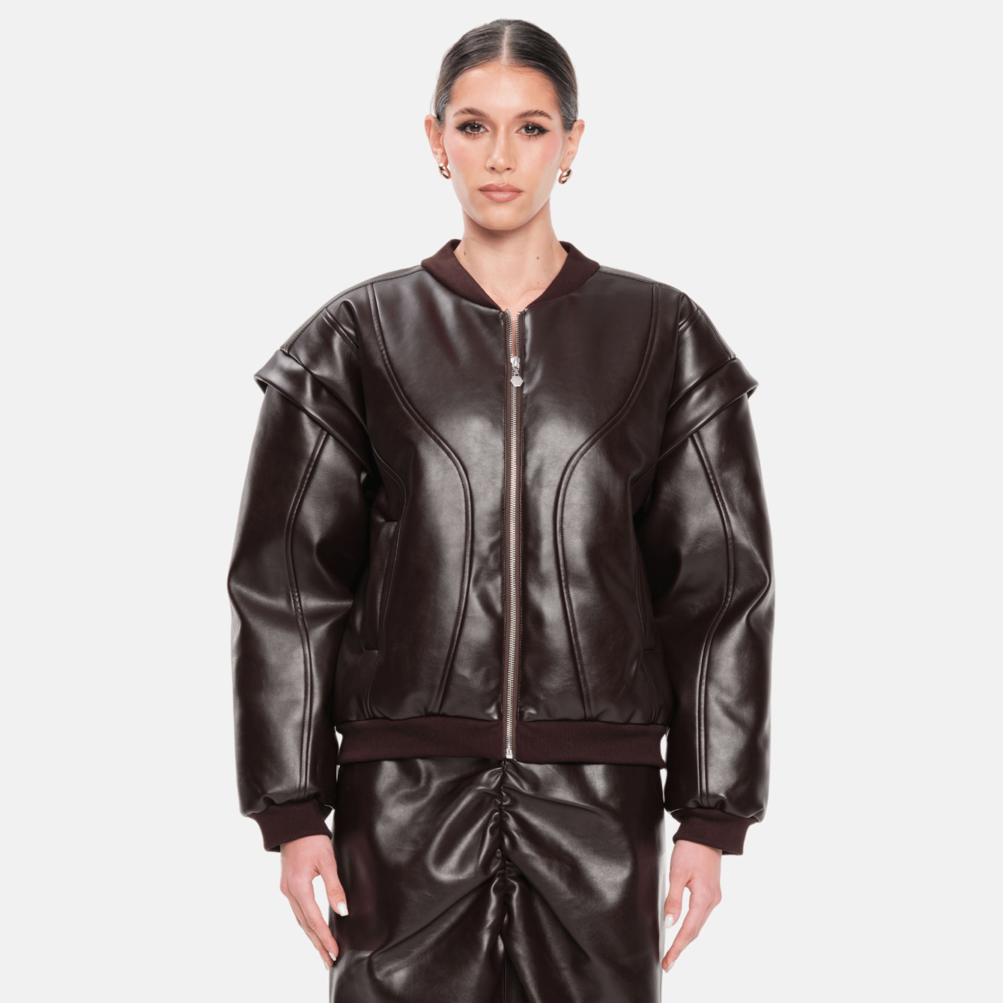 Effortless edge meets everyday cool. The VALENTINA Bomber is crafted from sleek faux leather with sculpted seam detailing for a structured, fashion-forward fit. Designed to elevate even the simplest looks — she knows how to keep it casual yet chic.