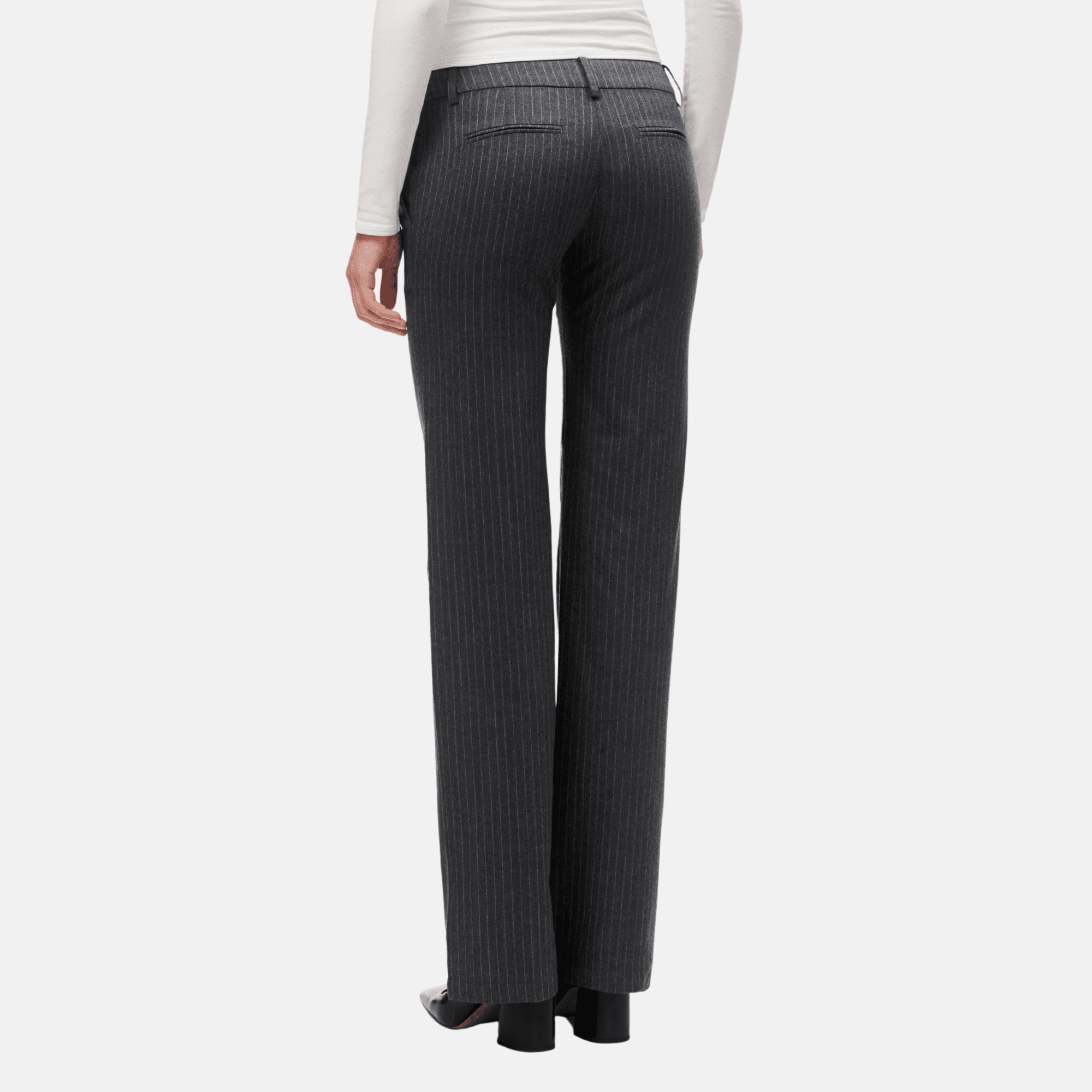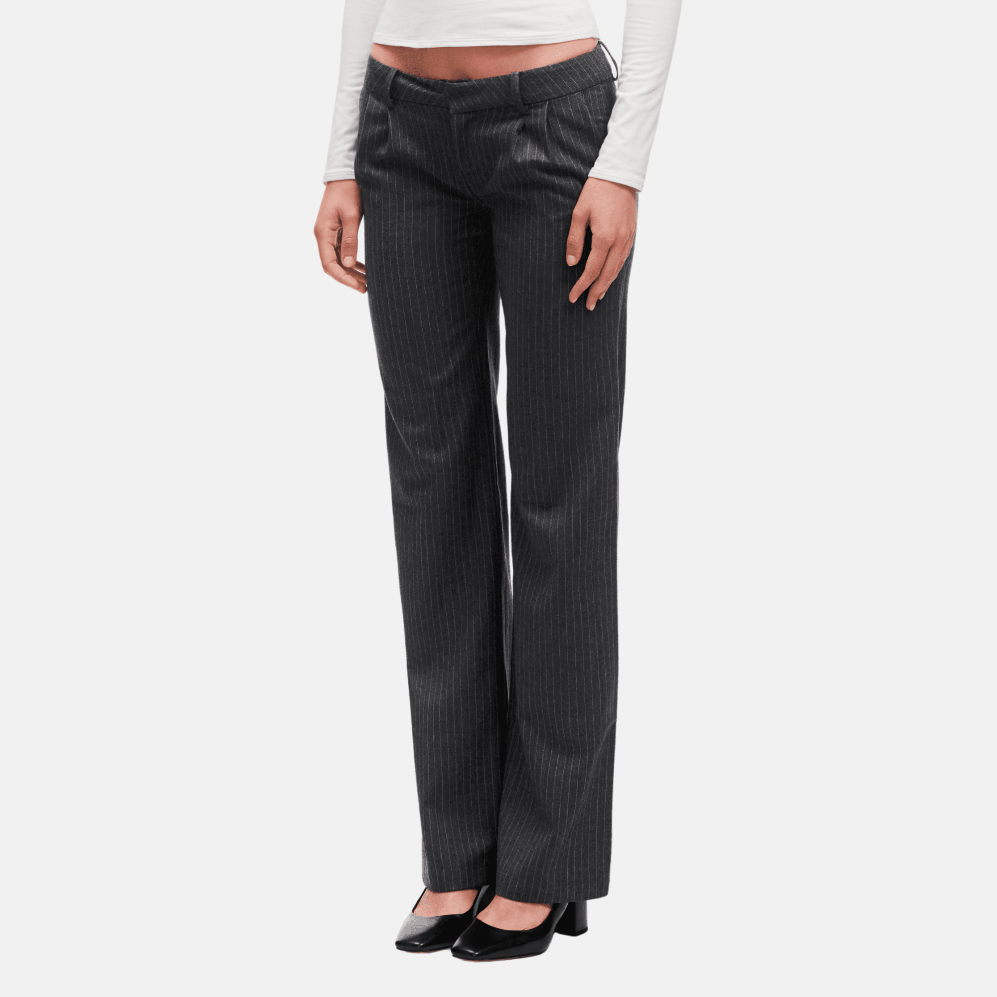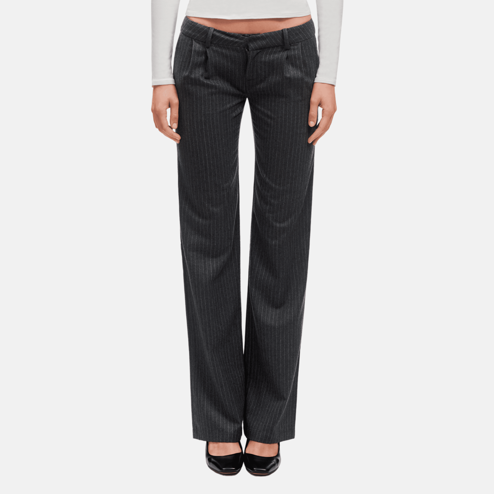 • LANI Suit Pants are a refined tailoring piece designed with a clean, straight-leg silhouette and a confident, structured fit. The tailored shape sits neatly at the waist and falls straight through the leg, creating a sharp and elongated line. Subtle pinstripe detailing adds depth and precision, reinforcing the modern, considered feel of the design.