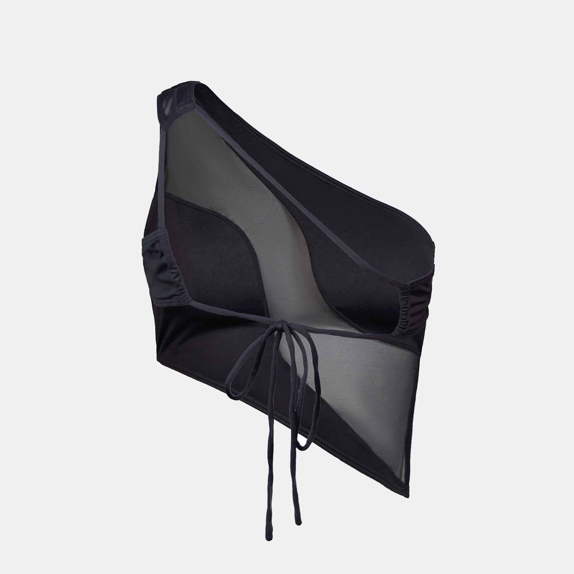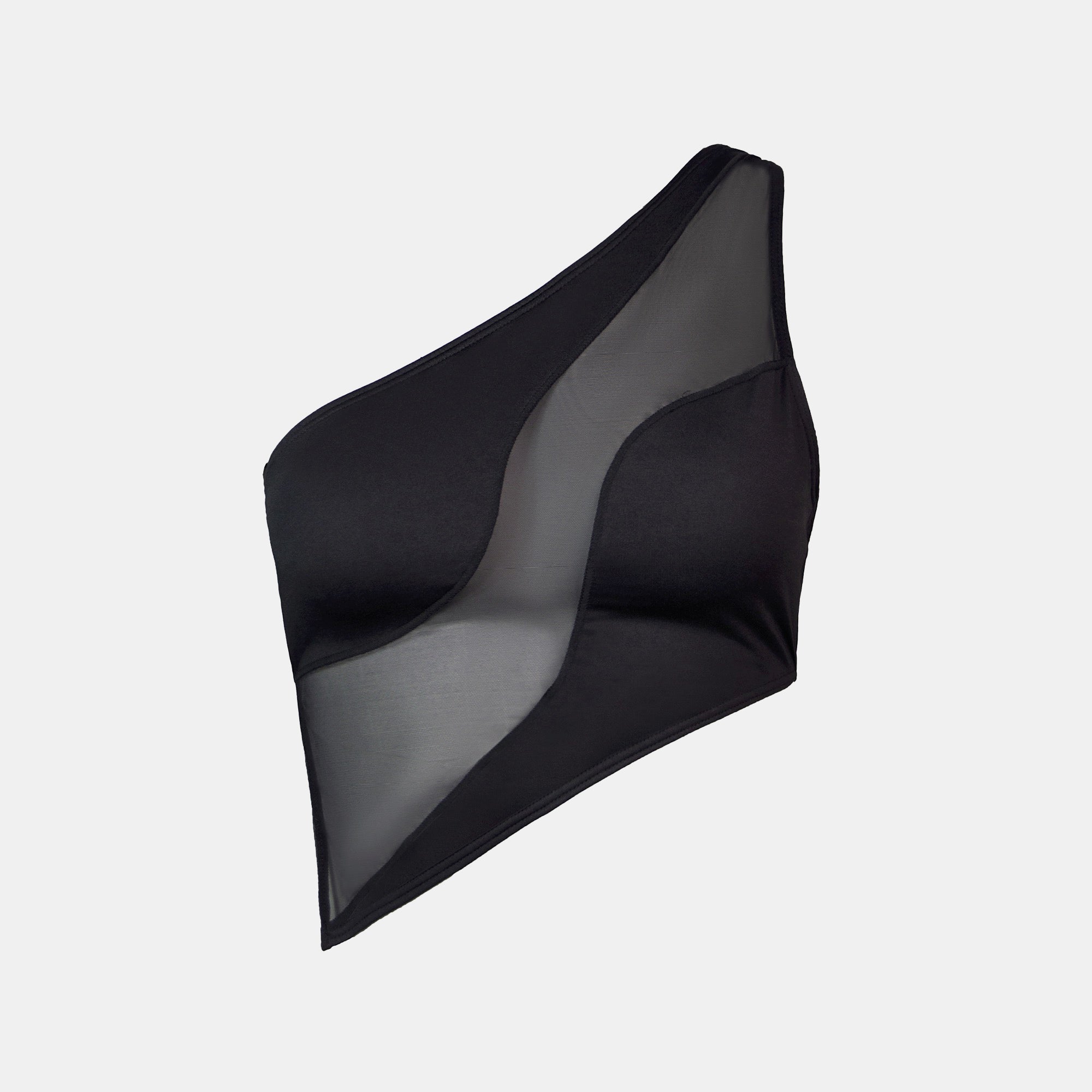 The CURVE Top is a cool and trendy piece made with see-through mesh material. It boasts a one-shoulder strap, crop top fit, and an open back with adjustable ties for the perfect fit. Style it with jeans, shorts, or a skirt and heels for a stylish night out.