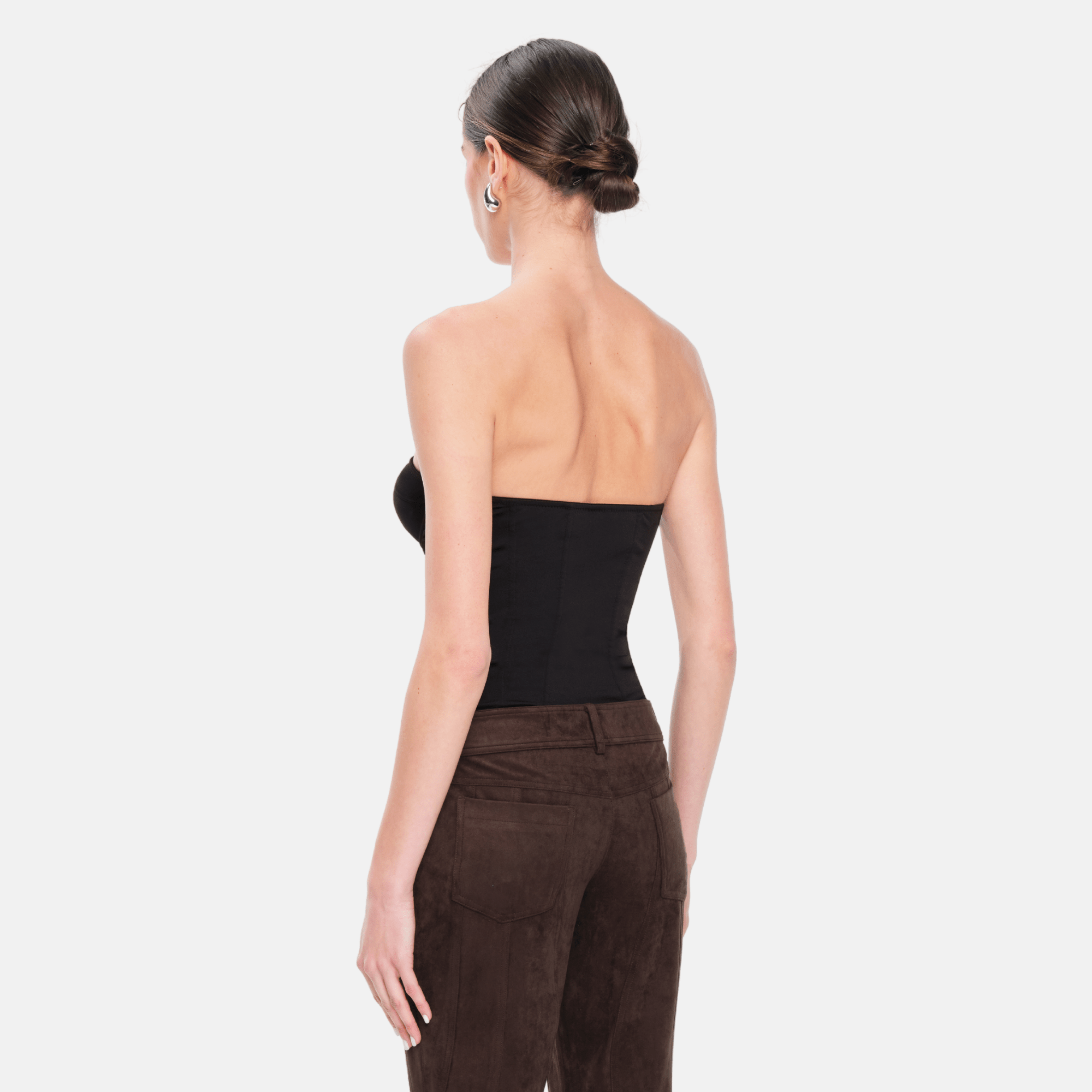 The REESE Corset Top is a sleek essential designed to sculpt and define. With structured boning, underwired cups, and a form-fitted silhouette, it offers both support and sophistication. Wear it with tailored trousers, denim, or layered under a blazer for a statement look that transitions effortlessly into the night.