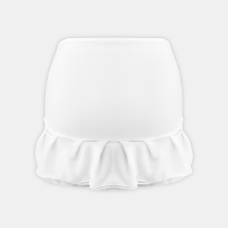 • The ELENA Mini Skirt is the definition of flirty and feminine. Designed in a smooth, fitted silhouette with a soft ruffled hem, this skirt flatters your shape while adding playful movement. The clean white finish makes it easy to style for any occasion.