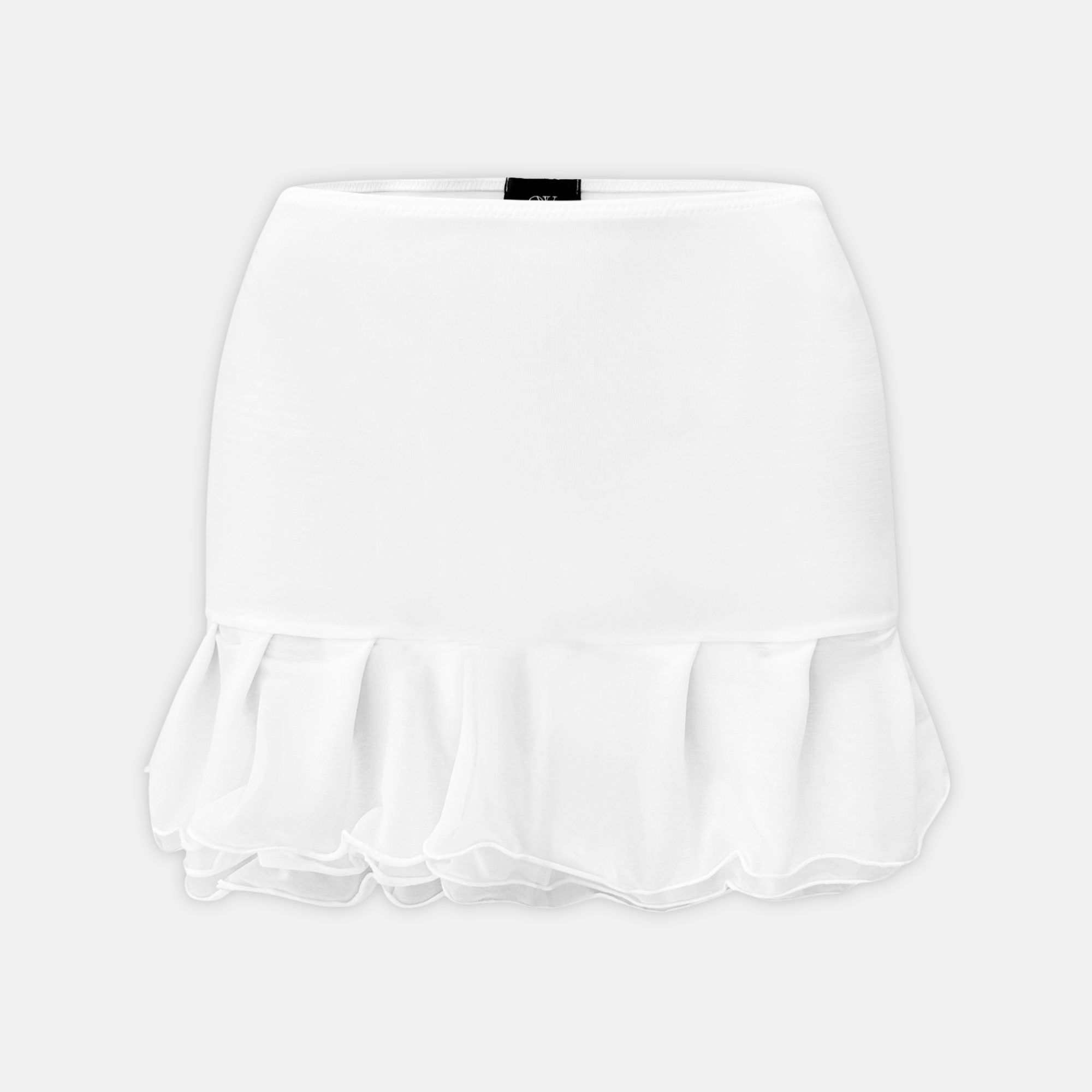 The ELENA Mini Skirt is the definition of flirty and feminine. Designed in a smooth, fitted silhouette with a soft ruffled hem, this skirt flatters your shape while adding playful movement. The clean white finish makes it easy to style for any occasion.