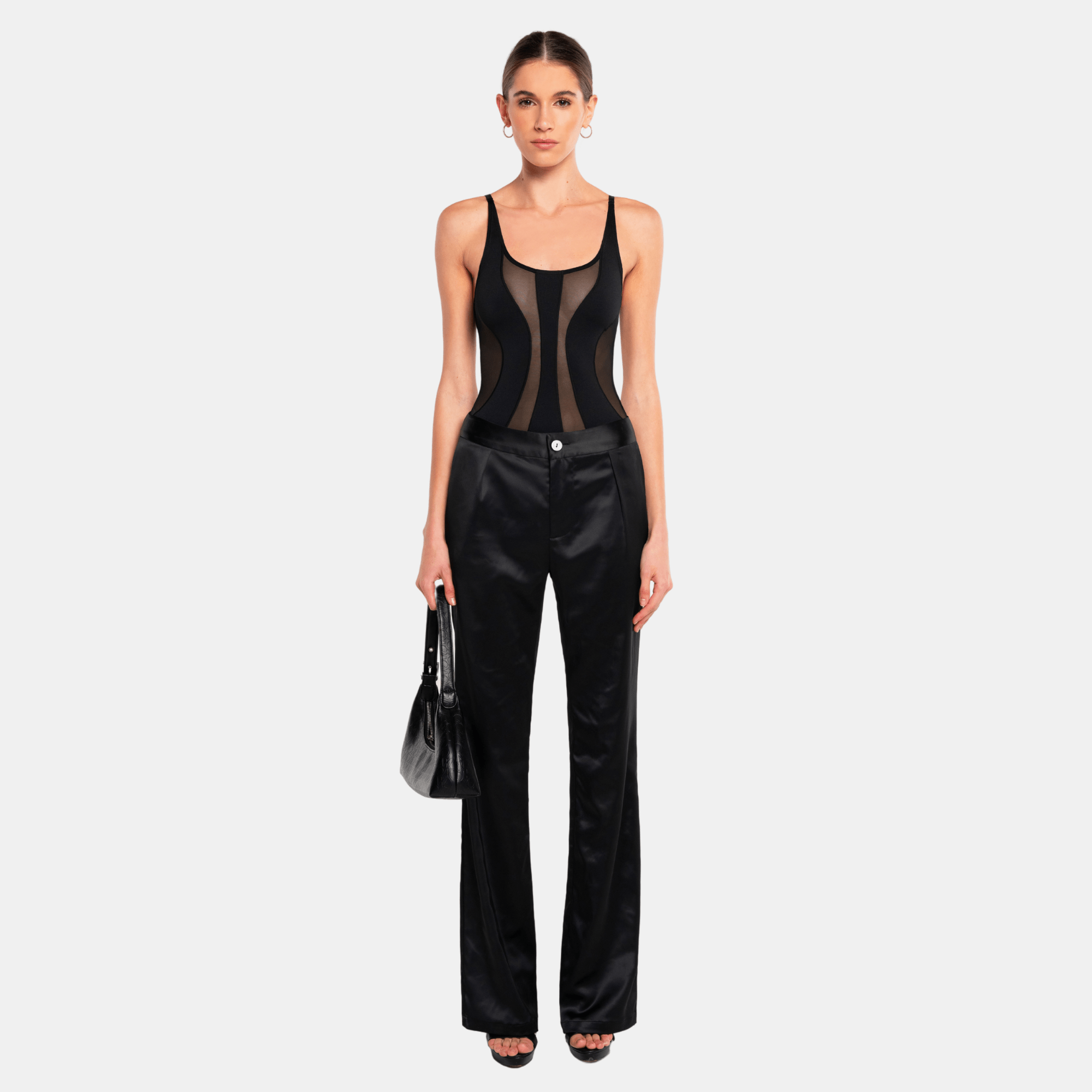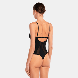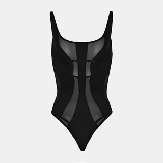 Our beautiful TWIST Bodysuit is designed in see-through mesh material with cover up details at the right spots. It has an open back and features adjustable straps and thong fit.