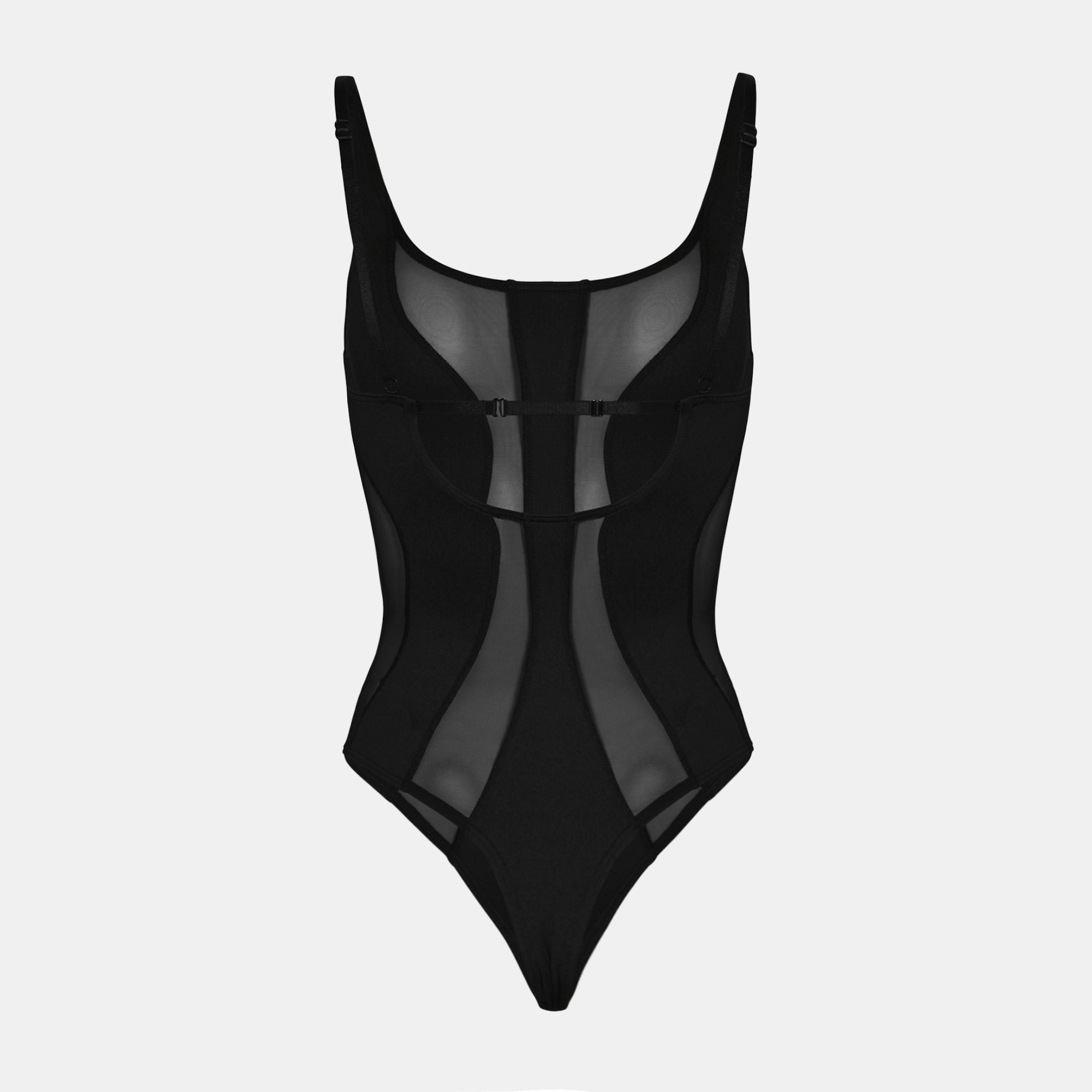 • Our beautiful TWIST Bodysuit is designed in see-through mesh material with cover up details at the right spots. It has an open back and features adjustable straps and thong fit.