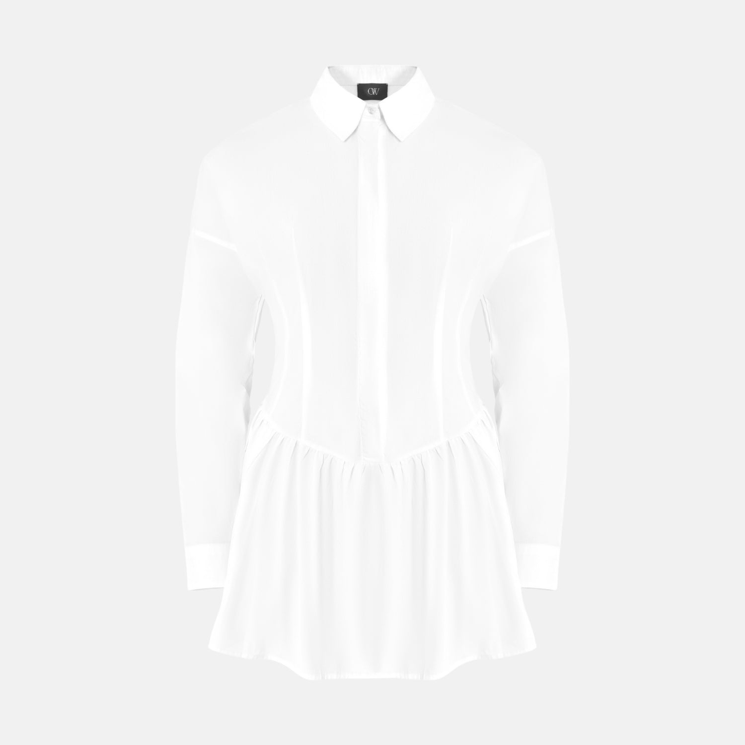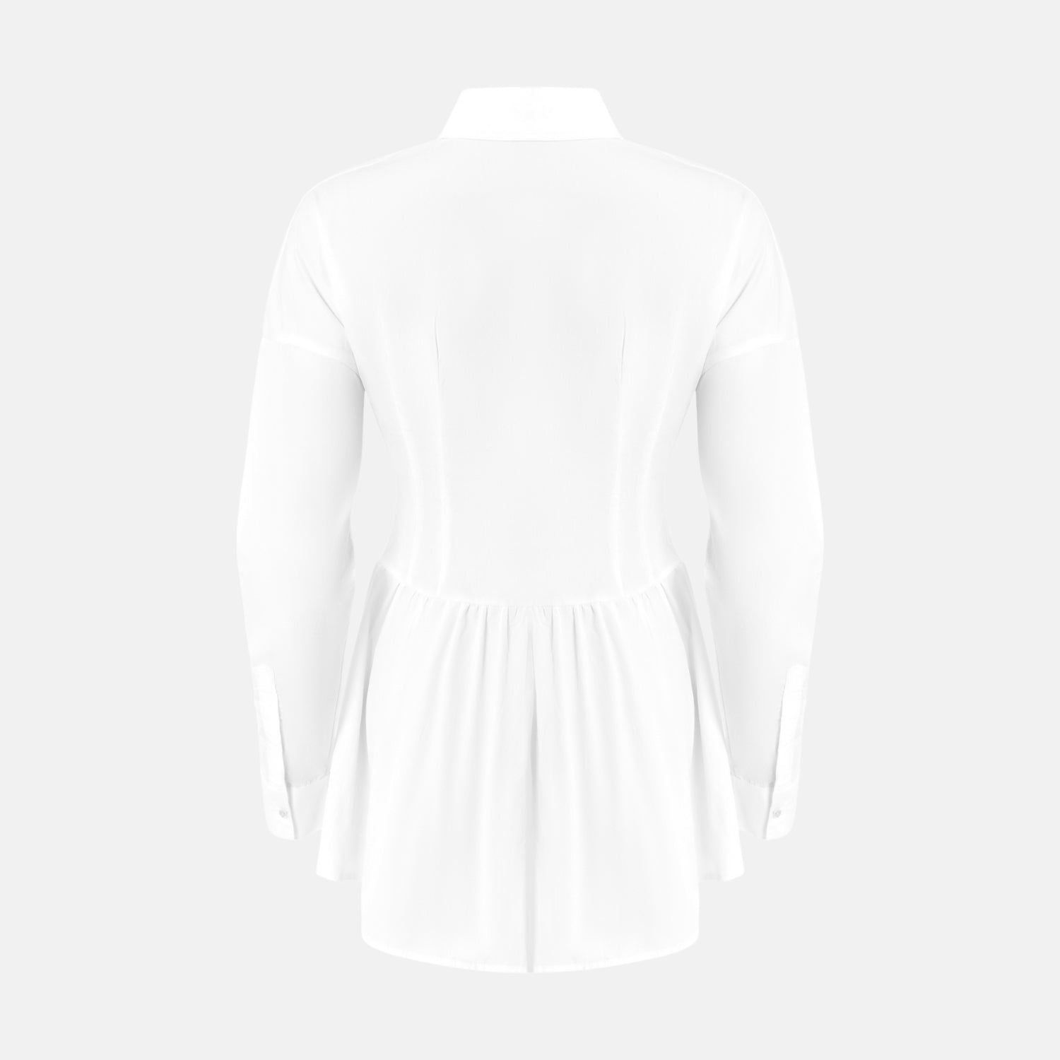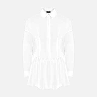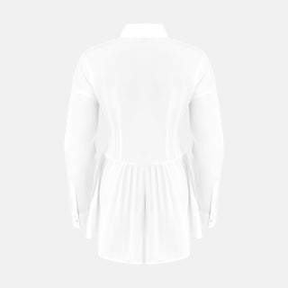 • The ELLIE Shirt Dress is your elevated everyday go-to. With its clean lines, structured waist, and flared mini skirt, it gives classic shirting a modern, feminine edge. Finished with a sharp collar, long sleeves, and hidden placket, it’s equal parts tailored and effortless.