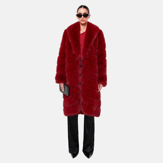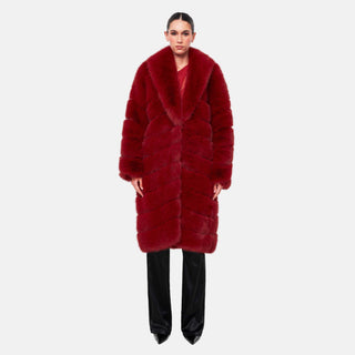 • The COPENHAGEN Coat is made in an oversize fit in knee length and out of the softest faux fur. Its made for the cold weather and will keep you warm all winter long. It has asymmetrical faux fur panels that makes it stand out of the faux fur crowd.